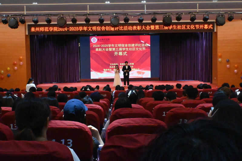 10月16日下午,我校2024-2025学年文明宿舍创建评比表彰大会暨第三届学生社区文化节开幕式在特教大楼第一学术报告厅举行。学工部、保卫处、校团委、后勤管理处等部门负责人、二级学院辅导员、学生社区员工代表、学生自律会骨干及获奖学生代表等350余人参加活动。
