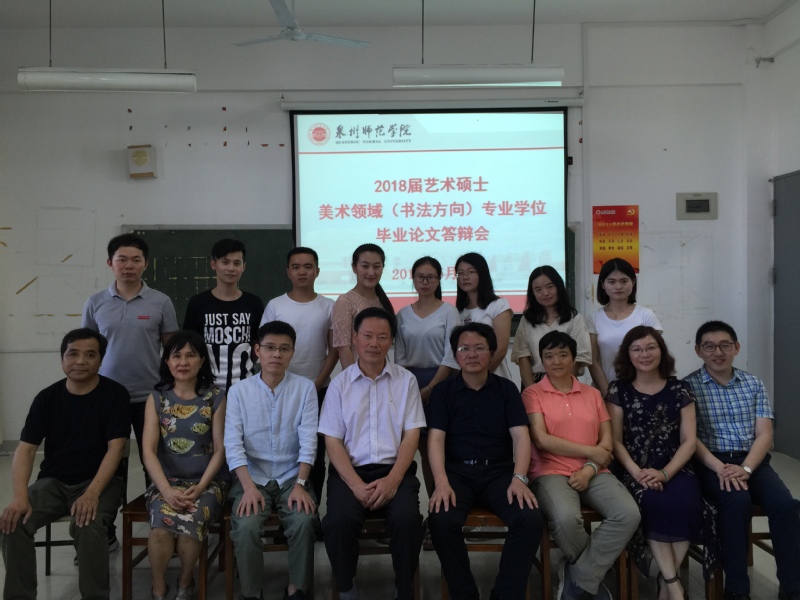 5月16日,我院2018届美术领域(书法方向)艺术硕士研究生学位论文答辩会在俊秀文学院研究生教室如期进行。2015级8名艺术硕士研究生顺利通过论文答辩。本次论文答辩委员会主席由福建师范大学美术学院博士生导师朱以撒教授担任,成员有福建师范大学美术学院博士生导师蔡清德教授、福建师范大学文学院张家壮副教授、集美大学美术学院叶梅副教授、我院MFA导师麦青龠教授。