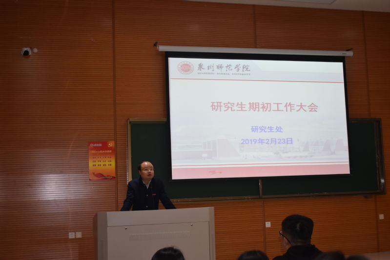 2月23日上午,我校在特教大楼B107召开研究生期初工作大会,研究生处负责人主持会议,研究生处全体教师及全体研究生参加会议。