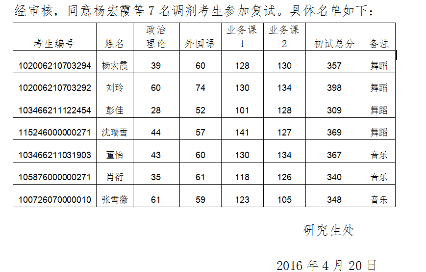 英国威廉希尔公司官网2016年艺术硕士研究生 第二批调剂考生参加复试名单