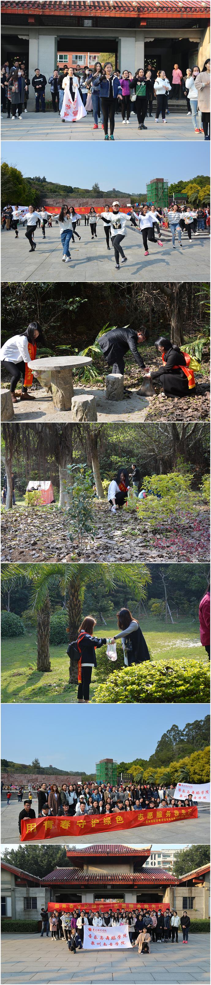 据悉,此次活动有两支不同的队伍参与其中,上午由泉州师院音乐与舞蹈学院学生会及2013级舞蹈学专业学生在刺桐公园带来5分钟的“快闪”表演,吸引了众多晨练中的市民前来围观,下午的森林公园,则是音乐与舞蹈学院自律会及2015级舞蹈学专业学生的活动场地,音乐一响起,“快闪”活动就吸引了广场上游客的目光,就连玩耍中的孩子们都纷纷前来驻足观看,掌声欢呼声此起彼伏。快闪之后,学生们便披上志愿者的绶带,以小组形势,分散到公园的各个角落,捡起游客们丢下的果皮、纸屑、烟蒂、饮料瓶等垃圾,以身作则,大力宣传环保的重要性。14音乐学专业陈青青在谈及自己的感受时提到,利用节假日来做志愿服务可以充实自己的课余生活,但如果大部门民众的环保意识没有提升,再多的志愿者也仍是杯水车薪。环保需要依靠社会的力量,不可能靠这一朝一夕的活动产生明显改观。所以此次活动旨在呼吁大家提升环保意识,从小事做起,如不乱扔垃圾,不随地吐痰等等,共同维护公共卫生,共创美好环境。