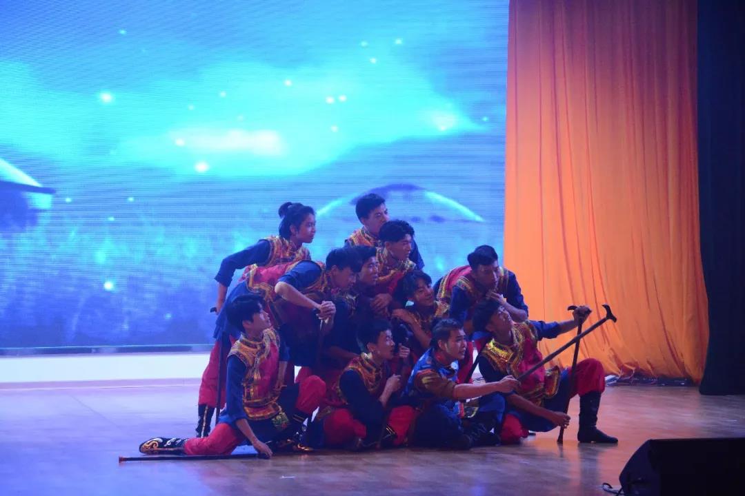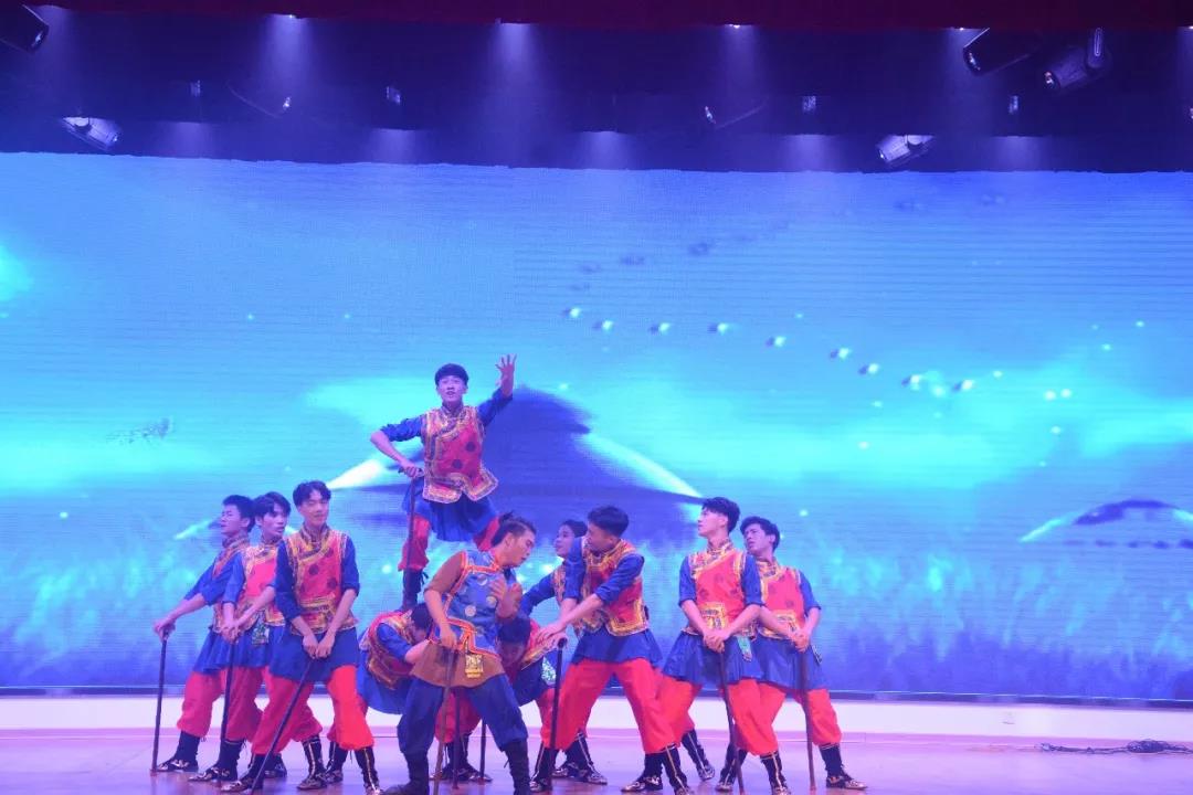 本次晚会,我院选送了多个优秀节目参演,展示出了我院学生扎实的专业基础和优秀的专业风采。我院的胡祎珂、林巧静、苏晨歆三位同学带来的二胡合奏《新赛马》,描绘出了一幅奔腾激越、纵横驰骋的赛马画面,乐曲铿锵有力的旋律正如建党信念一样坚定不移,蓬勃不息;由赵子萱同学演唱的《我的江汉大平原》描绘了江汉平原的自然景观和改革开放后的繁荣景象,激昂的旋律和节奏将晚会推向高潮,赢得了在场观众们的喝彩;舞蹈《爷爷们》以草原上的牧民爷爷们收听收音机里播报党的十九大胜利召开的新闻为线索,将传统的蒙古族舞蹈与美国爵士乐以及阿格尔母亲演唱的鄂尔多斯民歌《玛奈蒙格乐》巧妙地融合在一起,我院的林嘉腾、马金涛等同学通过舞蹈展现了牧区的生产生活现状和牧区老人们积极向上的精神面貌,以及在党领导下的新时代草原景象;跳跃的音符演绎着青春的活力,动人的舞步展示着青春的风采,由郭芳婷、赵海钦等同学表演的健美操《青春》,用活泼的舞步展示了当代大学生的团结一致、奋发向上的精神面貌,贯彻了习近平总书记对大学生“爱国、励志、求真、力行”的四项基本原则。不忘誓言,做一个四讲四有合格党员,在晚会的最后,现场全体党员起立重温入党誓词。