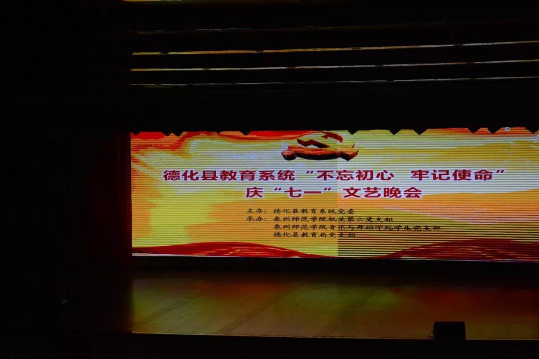 为庆祝建党97周年,深入贯彻落实党的十九大精神,2018年6月30日,由中共德化县教育系统委员会主办,中共泉州师院机关第六党支部委员会、中共泉州师院音乐与舞蹈学院学生党支部委员会、中共德化县教育局支部委员会承办的“不忘初心 牢记使命”庆“七一”文艺晚会于德化职校礼堂成功举办。