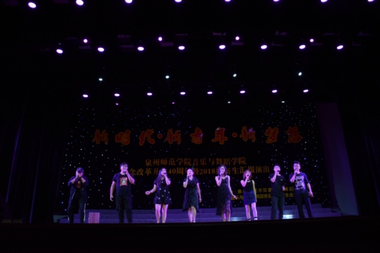 2018级全体同学共同表演的《强国一代有我在》唱响了新时代新青年的新梦想,歌声激励着全体青年用蓬勃的青春力量筑梦新时代,用勇于开创的青春担当成为强国新一代。泉州师范学院音乐与舞蹈学院新时代・新青年・新梦想——纪念改革开放40周年暨2018级新生汇报演出就此圆满落下了帷幕。
