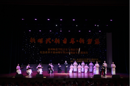 “泉州南音”是中国现存历史最悠久的古音乐,保留了唐代以前传统古老的民族唱法。由2018级南音班全体同学表演的南音《三千两金》展现了我院在保护和传播南音工作中独一无二的办学特色,带领观众们体味了一番浓郁的闽南传统文化气息。