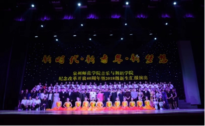 2018年10月21日晚,音乐与舞蹈学院于陈祖昌大礼堂成功举办“新时代・新青年・新梦想”——纪念改革开放40周年暨2018级新生汇报演出。2018级全体同学均参与了此次演出,为大家带来了一场精彩纷呈的视听盛宴。