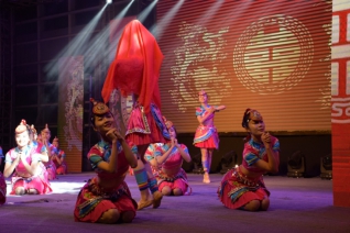 舞蹈《山哈女》描绘了一幅山烟渺渺的浓浓畲族风情景象,我院舞蹈专业的施颖、庄雯、杨芷璇等同学穿着艳丽的畲族服装,伴着欢声笑语,踏着青山碧水而来,用优美活泼的舞姿俘获了在场观众的芳心。