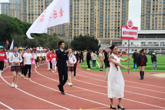 开幕式上,由我院2018级新生组成的方阵身着清一色院服、手举彩球、步伐规整,喊出了“青春如火,超越自我,音舞齐心,敢闯敢拼”的响亮口号,展示出我院学子们团结友爱和自信热情的精神面貌。随后是精彩的广播操表演,我院参演同学动作整齐如一、刚劲有力,每一个动作都彰显了我院学子昂扬的斗志和青春的风采。紧接着,我院舞蹈学专业同学潇洒飘逸的舞姿为此次运动会开幕式增添了绝妙的一抹色彩。