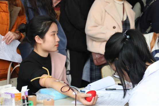 活动当天,寒冷的天气也阻挡不了志愿者们献爱心的步伐,志愿者们不顾寒风凛冽,热情不减。参加此次活动的有以往捐献过的志愿者,也有首次参加的18级新生。现场气氛热烈,大家都积极地配合献血工作,排单、量血压、验血、最后献血,整个流程秩序井然。在这个寒冷的季节,无偿献血的同学们用满怀的青春热血和爱心温暖了整个冬天,让活动现场充满温馨的氛围。志愿者们都表示为能参加这个活动而感到自豪,能为社会贡献出自己的一份力量是一件开心的事情。本次活动体现了我院无偿献血的志愿者们无私奉献的情怀,同时也希望在今后有更多同学参与到活动中来,奉献出自己的一份爱心。