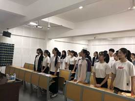 活动伊始,在场全体师生起立,共同合唱《中华人民共和国国歌》。紧接着,同学们通过观看直播,认真聆听习近平总书记的讲话,深刻理解新时代中国青年该如何弘扬伟大的五四精神,做新一代具有远大抱负、爱国情怀、伟大创造力的青年,要不辜负伟大时代、党和人民的期待,做一个关键时刻顶得住的人。