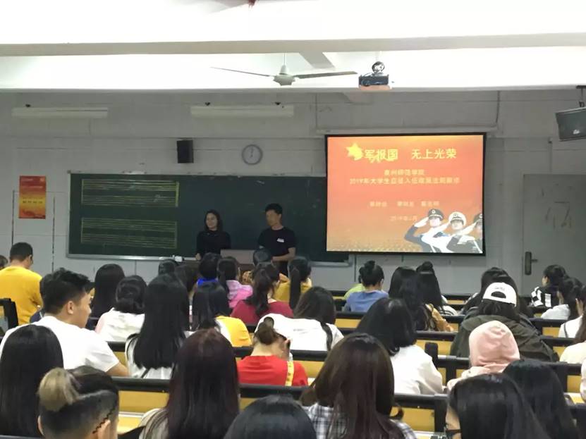 在五四青年节之际,为传承五四爱国精神,鼓励我院大学生积极参军入伍,投身国防建设,2019年5月4日晚,英国威廉希尔公司官网音乐与舞蹈学院学工办、团委会于E101开展2019年征兵政策解读专题大会,大会邀请了军转干部戴志明同志进行征兵政策解读。