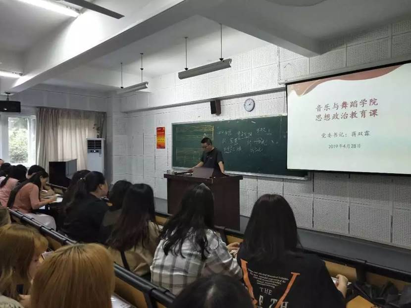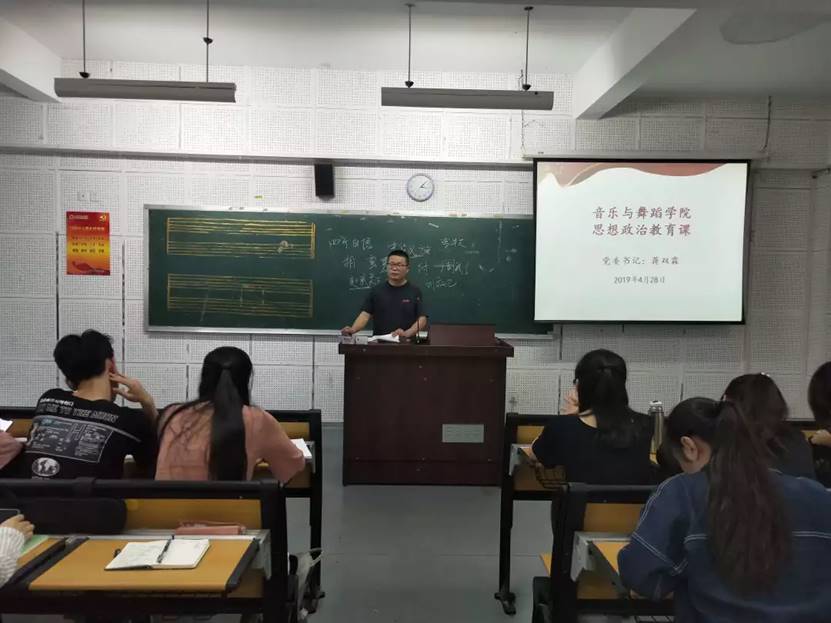 2019年4月28日下午,音乐与舞蹈学院学工办、团委会于E101开展了一堂别开生面的思想政治教育课,课程由学院党委书记蒋双霖主讲,学院各班学生代表共90余人参加了此次学习。