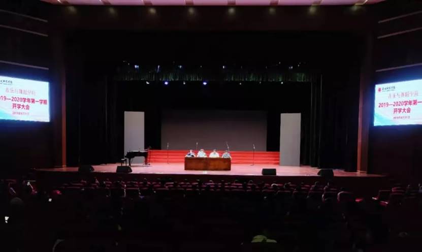 2019年8月31日晚7点,音乐与舞蹈学院于陈祖昌大礼堂召开2019—2020学年第一学期期初学生大会。出席此次大会的有我院党委书记蒋双霖,学工办副主任刘晓莹,辅导员李小国、朱思老师,及我院全体本科生。