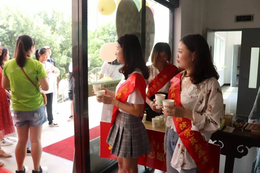 学生党员先锋队在艺术楼大厅设立了党员先锋岗,热情积极地为新生家长和新生答疑解惑,为远道而来的新生的家长们递上一杯水,耐心主动地为他们指引道路。在休息室,党员们还向新生及家长介绍报到流程、专业设置、军训安排、生活环境等相关事宜。
