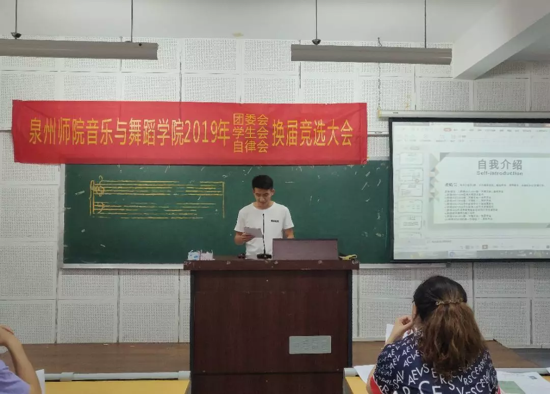 9月24日中午,我院在音乐与舞蹈学院艺术楼E101教室召开团委会、学生会、自律会换届竞选大会,音乐与舞蹈学院学工办副主任刘晓莹老师、辅导员李小国老师以及2018-2019主要学生干部出席了本次会议。