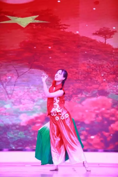本次晚会,我院选送了多个优秀节目参演,展示出了我院学生扎实的专业基础和优秀的专业风采。我院的赵子萱同学带来的女声独唱《阳光路上》充分展现中国人民坚持走中国特色社会主义道路的道路自信:由彭靖惟同学带来的舞蹈《映山红》反映了革命实践的真实写照,唤起全场观众对红色年代的记忆;洞箫独奏《大鱼》,箫声穿越岁月,幽幽吹响那梦里的念想,庄忠河老师与洪安琪同学用深邃的箫声与清脆的钢琴声将观众带入遐想;由郑星宇、王鑫等同学带来的萨克斯四重奏《我和我的祖国》,吹奏出共产党人不忘初心、奋力拼搏的篇章。晚会最后,全场人员大合唱《歌唱祖国》,大家挥舞国旗、气宇轩昂,用最真挚的歌声和最高亢的气势,向伟大祖国“表白”,唱出对祖国的热爱与祝福,赞颂祖国70年的辉煌成就,把晚会气氛推向了高潮。
