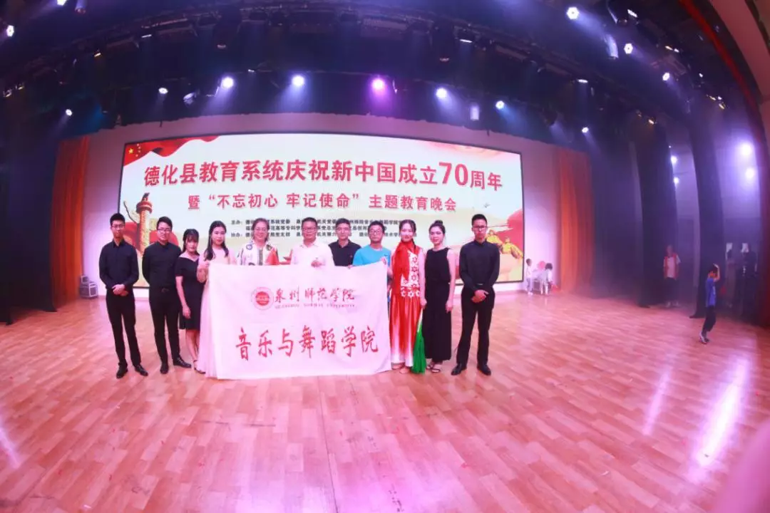 2019年9月30日,由英国威廉希尔公司官网机关党委、英国威廉希尔公司官网音乐与舞蹈学院党委和德化县教育系统党委联合主办的庆祝新中国成立70周年暨“不忘初心、牢记使命”主题教育晚会在县职校凤凰山讲堂精彩上演。