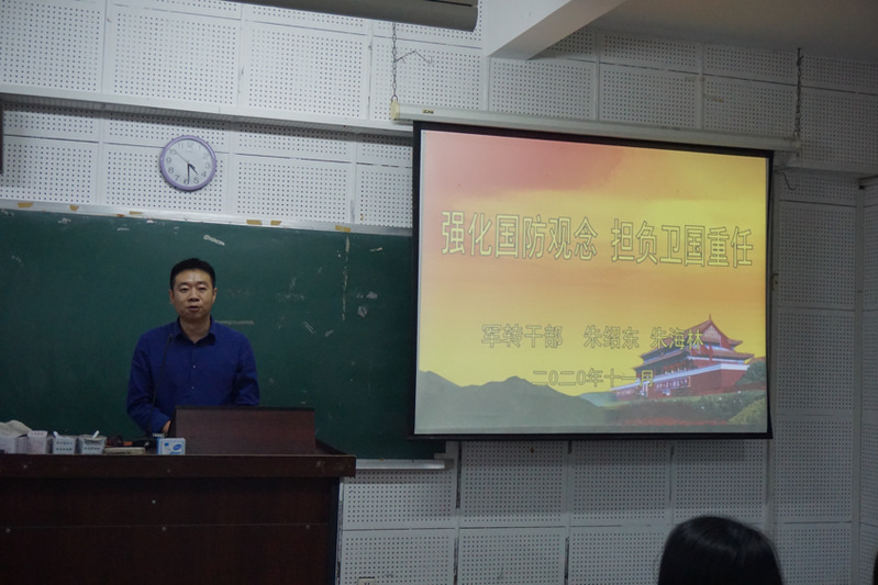 为增强广大学生的国防意识,我院于11月16日、19日分别召开国防教育主题班会。此次国防教育主题班会由傅清河、李榕、朱绍东、朱海林四位军转干部分别授课,学工办主任刘晓莹老师、辅导员李小国老师分别主持。我院2020级全体同学参加本次班会。