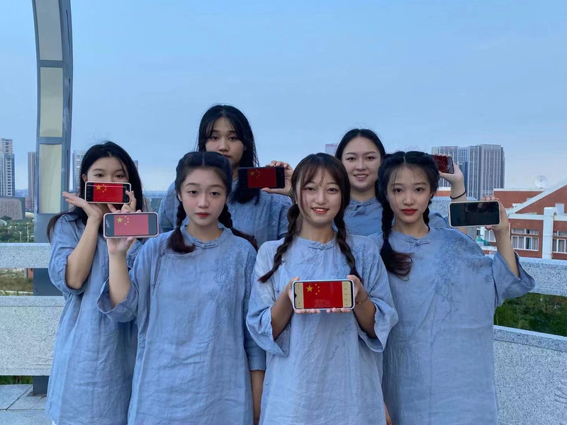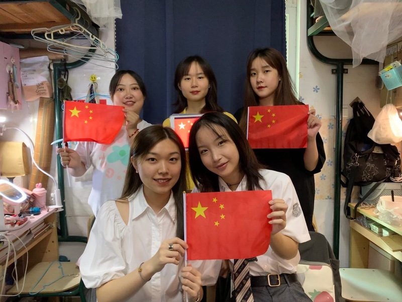 五星红旗,是新中国的象征,也是中华民族的骄傲。疫情期间,为避免人员聚集,同学们以宿舍为单位,用各式各样与国旗同框的创意合影纷纷向祖国表达出最真挚的感情和最美好的祝福。在鲜艳的五星红旗映衬下同学们脸上洋溢着自豪与喜悦。