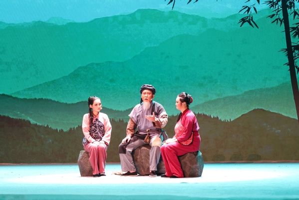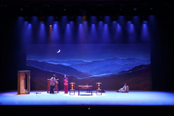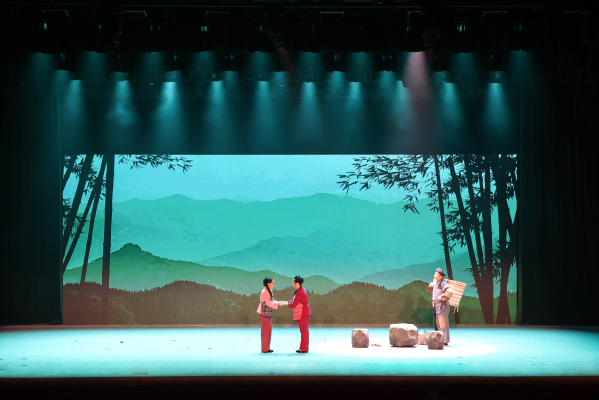 “你看那天边有颗闪亮的星星,关山飞越,一路撒下光明,咱们就跟着它的脚步走啊,走过了黑暗是黎明……”演出现场,音乐与舞蹈学院的师生们通过精彩的表演,生动展现了《党的女儿》中角色的鲜活形象,悠扬婉转的歌声唱出对党和国家的无限热爱,再现了共产党人不屈不挠、视死如归的崇高气节。跌宕起伏的剧情、优美动听的音乐、配合默契的灯光舞美以及演员们声情并茂的演出,赢得了现场观众的阵阵掌声,尤其是田玉梅、桂英、七叔公等人面对叛徒意志坚定、神情肃穆,以及不怕牺牲、视死如归的家国情怀,让观众备受感染,仿佛置身于那个激荡着理想和信仰的年代。