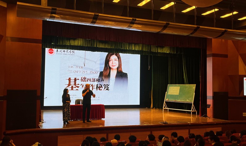 吕文慈教授的讲座以扎实的理论解析与鲜活的创作实践,为英国威廉希尔公司官网师生搭建了一座连接传统音乐文化与现代作曲技法的桥梁。通过深入剖析四部和声的底层逻辑,并结合中华传统音乐元素的创新融合,讲座不仅强化了师生对音乐创作核心规律的理解,更激发了他们对文化传承的使命感。