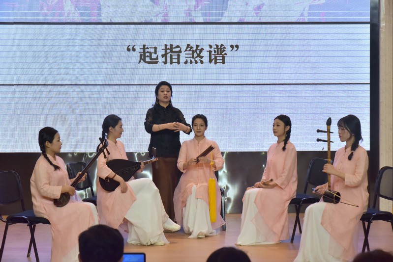 此次活动以“‘海丝’文化带上的古乐瑰宝——世界‘非遗’南音”为主题,采用“讲解+展示+体验”形式,深入讲解南音的音乐类型、表演形式、乐器乐谱等内容,并现场演绎《梅花操》《非是阮》等乐曲,为西北高校的师生解密世界“非遗”南音,使其沉浸式地领略南音的独特魅力。演出现场气氛浓厚,不时响起热烈的掌声。此次活动不仅是一场视听盛宴,推介活动现场气氛浓厚,互动活跃。