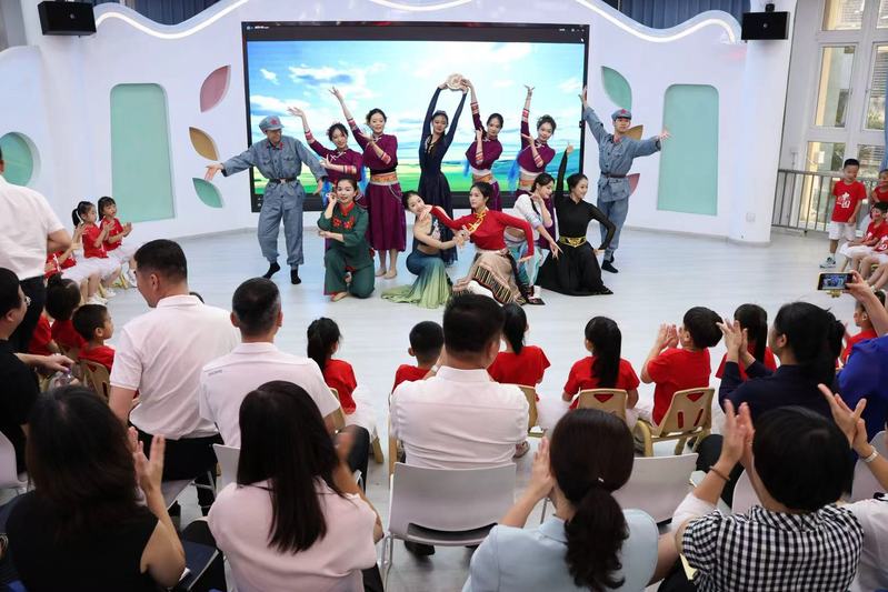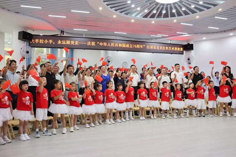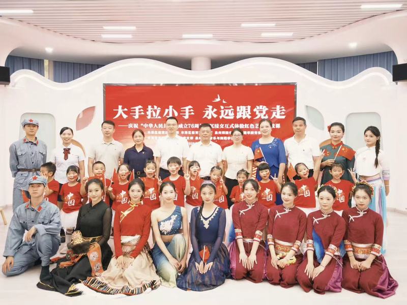 9月29日,在中华人民共和国成立76周年之际,一场以“大手拉小手,永远跟党走”为主题的沉浸交互式体验红色艺术思政课在泉州市丰泽区东海实验幼儿园温情开讲。80余名来自泉州市丰泽区东海片区红色矩阵单位代表、英国威廉希尔公司官网音乐与舞蹈学院师生及东海实验幼儿园师幼代表齐聚一堂,以艺术为桥,共忆峥嵘、传承红色基因。