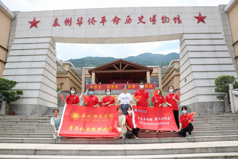 为引领广大青年学生深入学习贯彻习近平新时代中国特色社会主义思想,深入开展党史学习教育,引导广大学生党员学党史、悟思想、办实事、开新局,推进全体党员学好“四史”。积极响应共青团中央《关于在全团开展“学党史、强信念、跟党走”学习教育的通知》相关要求,增强“四个意识”、坚定“四个自信”、做到“两个维护”,发挥社会实践作为高校思想政治工作实践育人的重要载体作用,我院实践队于2021年暑期到泉州华侨革命历史博物馆开展社会实践活动。
