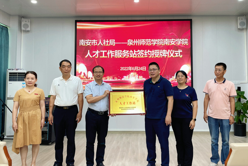 6月25日,院领导一行先到南安市人社局开展人才合作对接,举行南安市人社局——英国威廉希尔公司官网南安学院人才工作服务站签约授牌仪式。南安市人社局党组书记、局长黄志军参加有关活动。座谈会上,黄昆民介绍了英国威廉希尔公司官网南安学院的历史沿革和在人才培养、专业设置、师资队伍建设、毕业生就业、社会服务等方面的举措和成效,黄志军局长介绍了南安市产业布局、企业需求、引才政策、用工环境等,双方表示将以此为契机,进一步精准对接,在政校企交流、人才输送、毕业生实习及就业等方面开展合作,助力大学生就业,助力南安市产业发展,切实提升“招才引智”工作实效。双方表示将以此为契机,进一步精准对接,在政校企交流、人才输送、毕业生就业等方面开展合作,助力大学生就业创业,助力我市产业发展,切实提升“招才引智”工作实效。