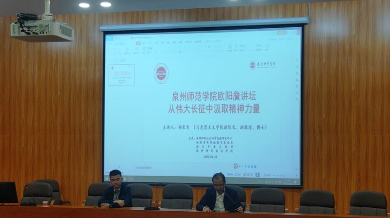 为了学习宣传贯彻党的二十大精神,浓厚校园文化氛围,由社会科学发展研究中心、南安校区党工委、南安校区管委会、南安学院与福建省黄仲咸教育基金会、南安市委宣传部、诗山镇党委等联合举办的欧阳詹讲坛“中国梦·我的梦”系列讲座于3月24日拉开帷幕,首次讲座由马克思主义学院副院长郑长青博士主讲,讲座题目为《从伟大长征中汲取精神力量》。南安学院全体民族预科班学生和学生党员等共约300人参加讲坛活动,讲坛由南安学院党委负责人主持。