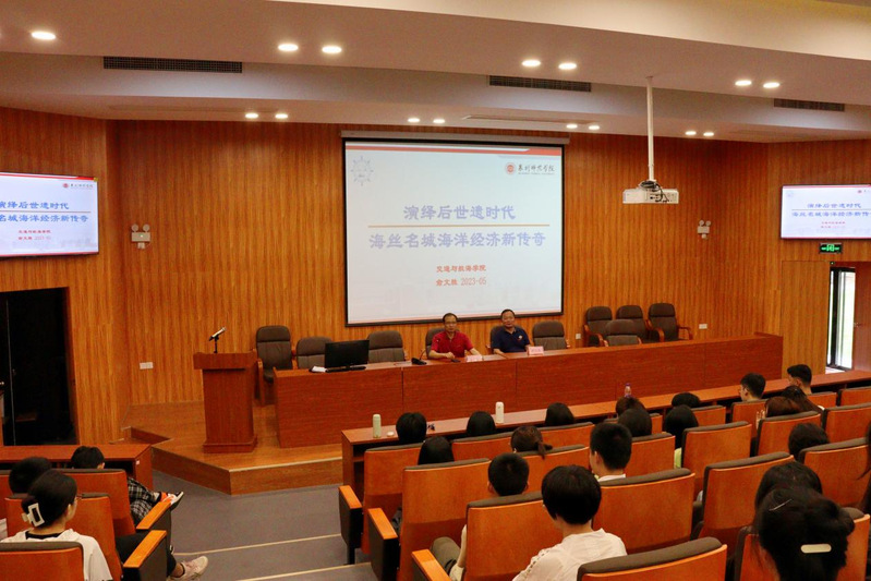 课上,俞文胜从“泉州海丝文化的历史脉络”、“泉州:宋元中国的世界海洋商贸中心”、“国家海洋强国战略”、“振兴泉州海洋经济的思考”、“中欧班列与丝路海运”、“智能无人船泊”六大方面,运用图片、文字等多种形式展开讲述,深入浅出讲述泉州海丝文化的发展路程。从20年申遗之路、泉州城历史、泉州港发展历程、人文之美,到介绍多元文化在泉州的融汇共生。俞文胜提到国家海洋战略,改革开放以来特别是党的十八大以来,泉州的海洋经济不断发展,围绕国家海洋强国战略的理论探索与现实建设一直在推进,泉州聚焦海洋战略、特色发展海洋相关事业取得一系列可喜成果。福建更是率先开启“丝路海运”建设,是落实“一带一路”倡议,建设21世纪海上丝绸之路核心区、促进对外开放和国际交流合作的重要措施。