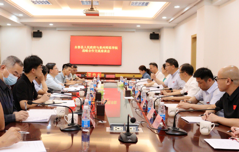蔡映辉对夏侯建兵一行的到访表示热烈欢迎,对永春县产业结构及人才需求等情况进行了介绍,重点解读了永春县大学生就业创业优惠政策,表达了与我校加强产学研对接,搭建校地合作平台,进一步畅通校地人力资源合作的意愿。他希望,双方建立可持续的人才交流模式,探索与我校建立长期结对共建的新机制,希望我校能够在永春支柱产业技术攻关、乡村振兴、紧缺学科教师招聘和营销人才招聘等方面给予支持,使得校地合作真正落地并“开花结果”。