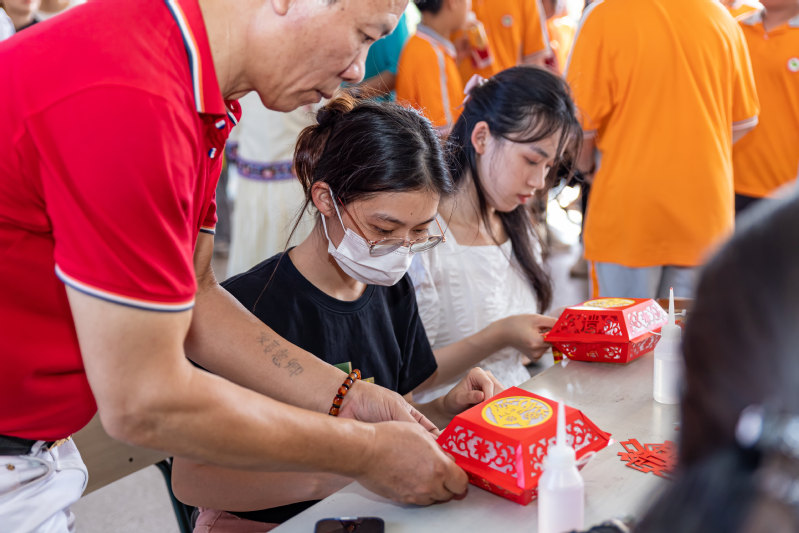 同学们正在运用现代材料和技术现场制作花灯