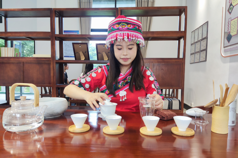 民族预科班的同学正在展示茶艺