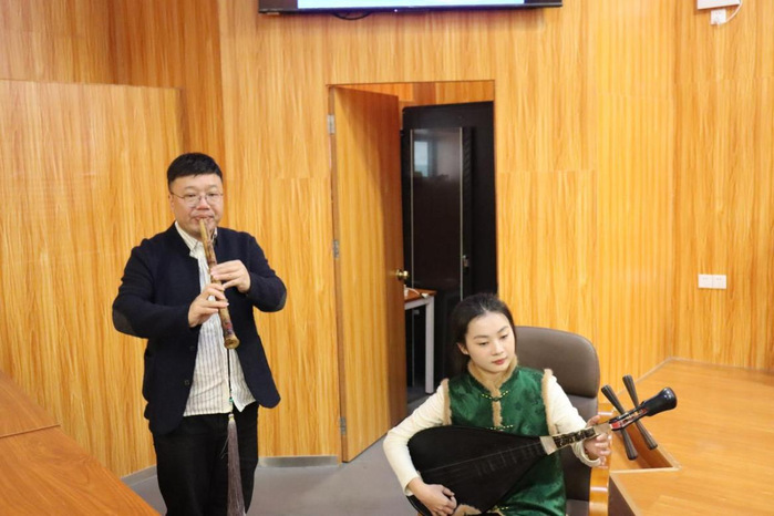 讲座过程中,晋江市南音艺术团现场演奏南音曲目,带领同学们感受被称为“中国音乐史上的活化石”的闽南传统音乐,体味文化传承的精髓。