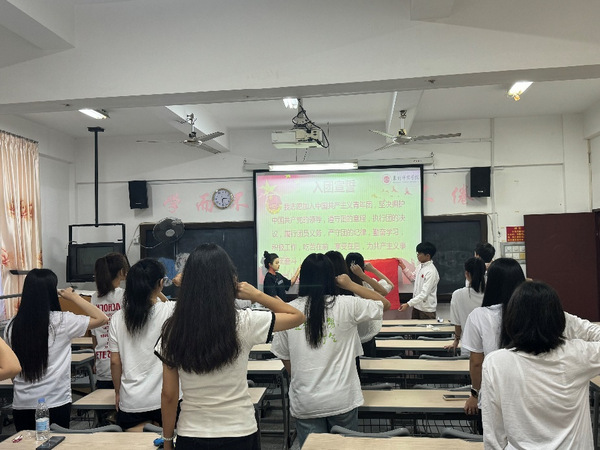入团仪式在庄严的国歌声中拉开序幕,院团委副书记林妙珊宣读新团员名单,并向他们表示祝贺。