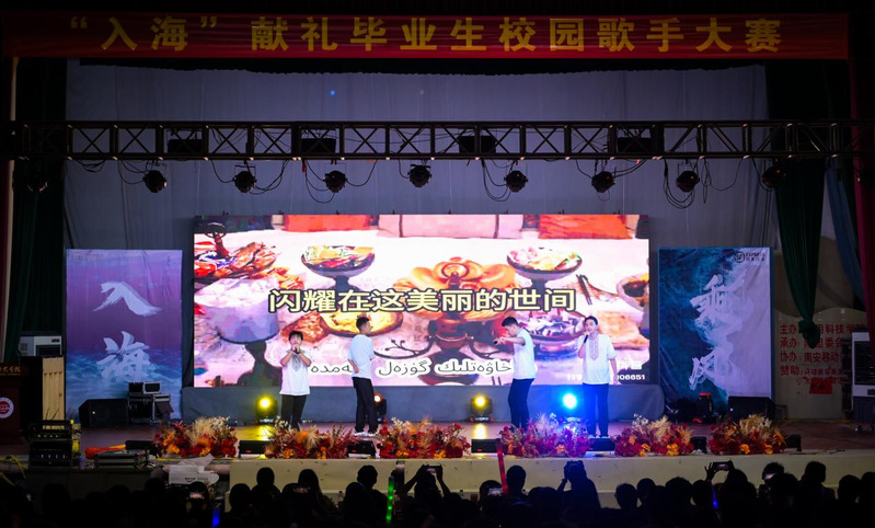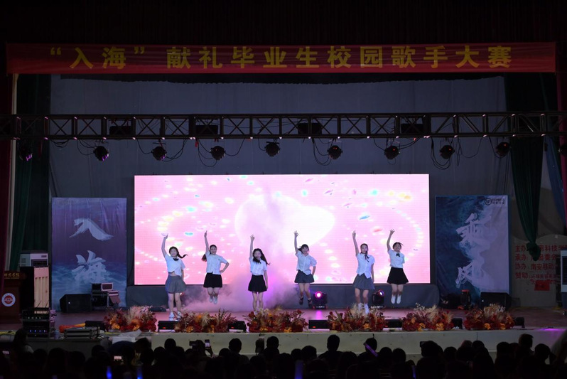 最后,全体组合为师生们献上合唱《入海》。大家激情演唱,现场气氛热烈而感人。师生们沉浸在其中,手中的荧光棒随节奏挥舞,欢呼声和掌声不断。每个人脸上洋溢着喜悦和兴奋,为这场晚会画上了完美的句号。