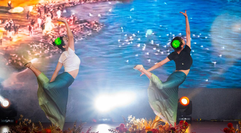 随后,马英慧和田思懿带来的傣族舞《彩云之南》充满了浓郁的民族风情,她们曼妙的舞姿和动感的音乐将观众带入了一个美丽的南国风情世界。
