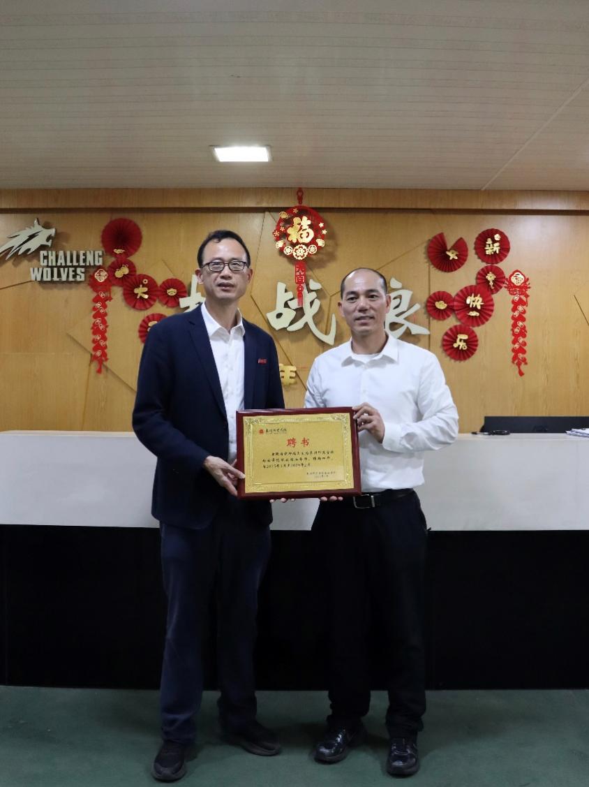 活动伊始,肖文清代表南安学院向福建挑战狼科技有限公司总经理侯坤鸿颁发“就业创业导师”聘书,标志着双方在人才培养、实践教育领域的深度合作正式启动。肖文清表示,聘任成功企业家为学院就业创业导师是推动产教融合的重要举措,希望侯总以丰富的行业经验赋能学生职业发展,为南安学院学子搭建从课堂到产业的桥梁,助力学院创新创业型人才培养。