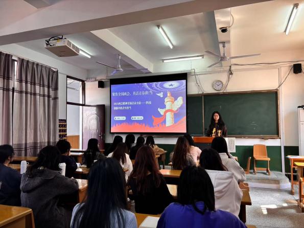 24级英语1班与24级英语2班联合开展“两会精神引领青春力量,科技创新中的青年担当”团日活动。重点解读“揭榜挂帅”和“人工智能新赛道”等政策,结合国产芯片研发和碳中和项目案例,激发学生创新热情。此外,探讨语言专业与科技结合的路径,利用英语优势引进国际技术理念,助力科技成果转化。
