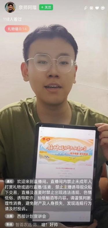 3月28日,南安学院举办西部计划线上宣讲会,辅导员洪承隆通过线上平台进行宣讲。