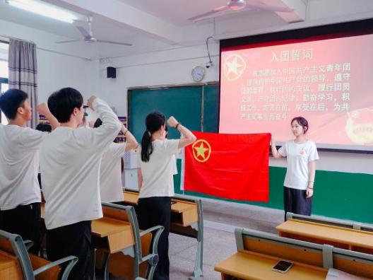 随后,院团委组织部部长郑丽萍宣读新团员名单。全体新团员面向团徽庄严承诺,铮铮誓言展现新时代青年的精神风貌。最后,全场齐唱团歌,仪式在激昂旋律中圆满落幕。