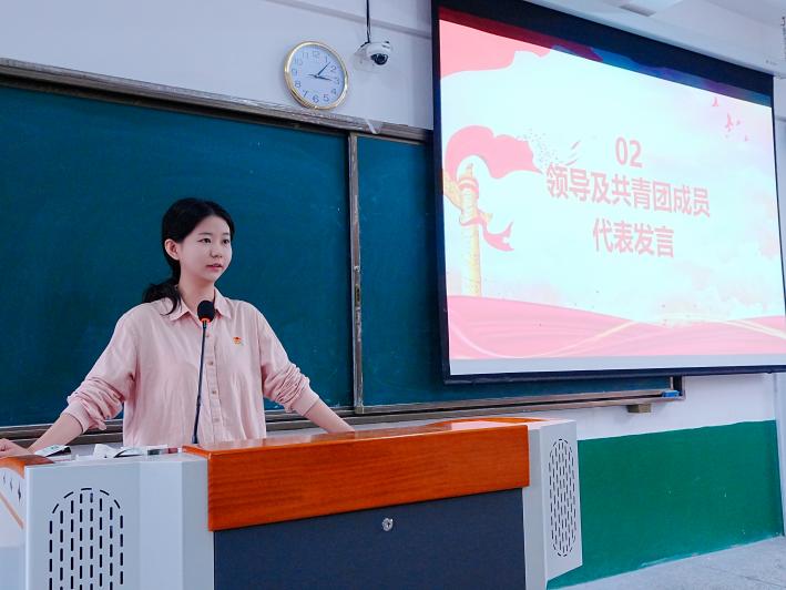 “这份团徽承载着十年成长印记。”拥有十年团龄的陈毅同学通过个人成长故事,展现新时代共青团员的使命担当。24英语2班余海杰作为新团员代表发言。他表示,加入共青团不仅是荣誉,更是责任的开始,将把入团作为人生新起点,以团章为行动指南,在团组织培养下,脚踏实地提升本领,用行动践行入团誓言,在志愿服务和社会实践中展现青春担当。