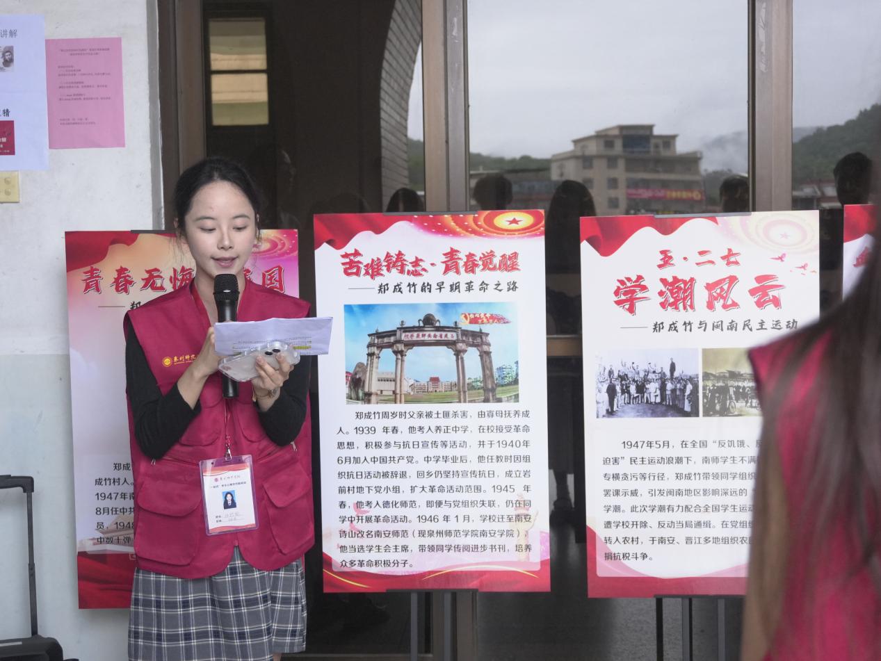 活动通过图文、影像等形式展现了南安师范学校首任学生会主席郑成竹投身革命、英勇就义的生平事迹与崇高精神。活动旨在挖掘本土红色资源,弘扬廉洁文化,引导师生传承红色基因,赓续革命精神。