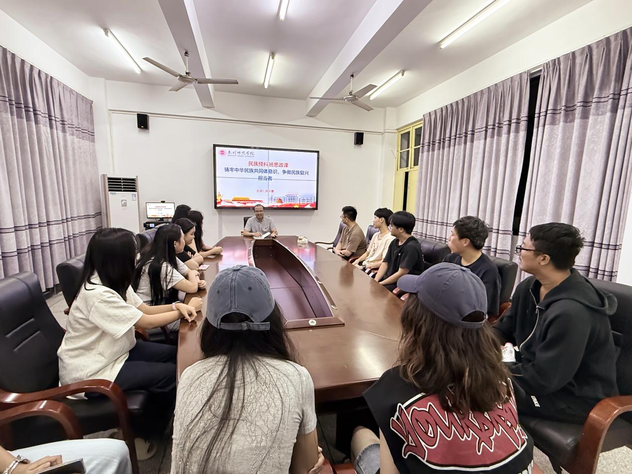 6月25日,南安校区管委会主任、南安学院副院长(主持工作)洪少春为民族预科班部分学生讲授思政课《铸牢中华民族共同体意识,争做民族复兴担当者》。课程采用交流互动模式,围绕专业选择与责任担当、共同体意识内涵、人生规划与国家发展等主题展开,并与同学们深入交流,听取对学院工作和校区管理的建议。