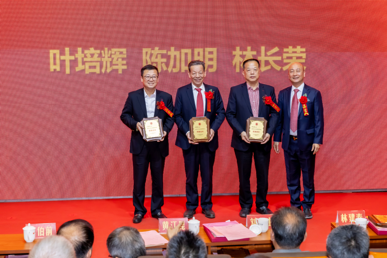 新当选的校友会会长叶少鸣向吴建霖、洪炳生、黄印强、黄昆民、黄振平、曾文章、颜遐遗顾问颁发聘书