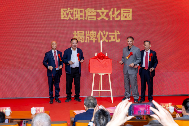 在校友会筹备前期,我校客座教授陈加明先生和校友叶少鸣先生慷慨捐资60万元,用于欧阳詹文化园的建设,为校友会的成立增添了光彩。厦门市人大常委会原副主任、党组成员刘育生,泉州市委原常委、泉州市人民政府原常务副市长林伯前,与陈加明先生、叶少鸣先生一同在会上为欧阳詹文化园举行了揭牌仪式,并合影留念。