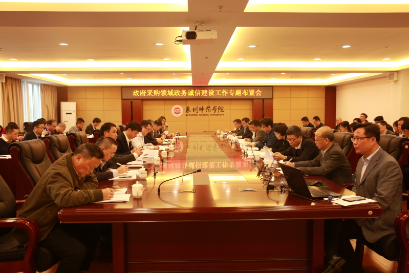 12月25日下午,学校在行政楼201会议室召开政府采购领域政务诚信建设工作专题布置会,校党委副书记林伟,机关各部门、图书馆、网络中心、学报负责政府采购工作的分管领导及经办人员,各二级学院负责采购及验收工作小组领导及成员代表参加会议。林伟主持会议并作讲话。
