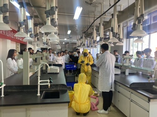为深入学习贯彻习近平总书记关于安全生产重要指示精神,贯彻落实教育部《高等学校实验室安全规范》“安全第一、预防为主、综合治理”的方针,切实增强我校师生的实验室安全意识和应急处置能力,保障学校实验室安全,2023年5月9日下午,我校举行实验室危险化学品泄漏应急演练。