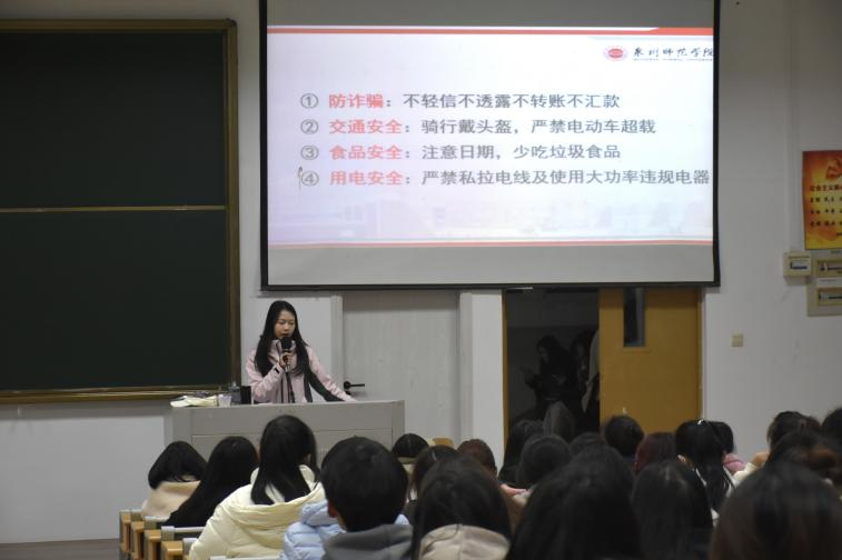 主题班会奏响“安全教育周”。我院辅导员于2月25日晚开展5场安全教育班会,辅导员们结合具体事例,教育引导学生关注交通安全、财产安全及人身安全,谨防网络电信诈骗,远离网络刷单、网络借贷和网络传销等行为。